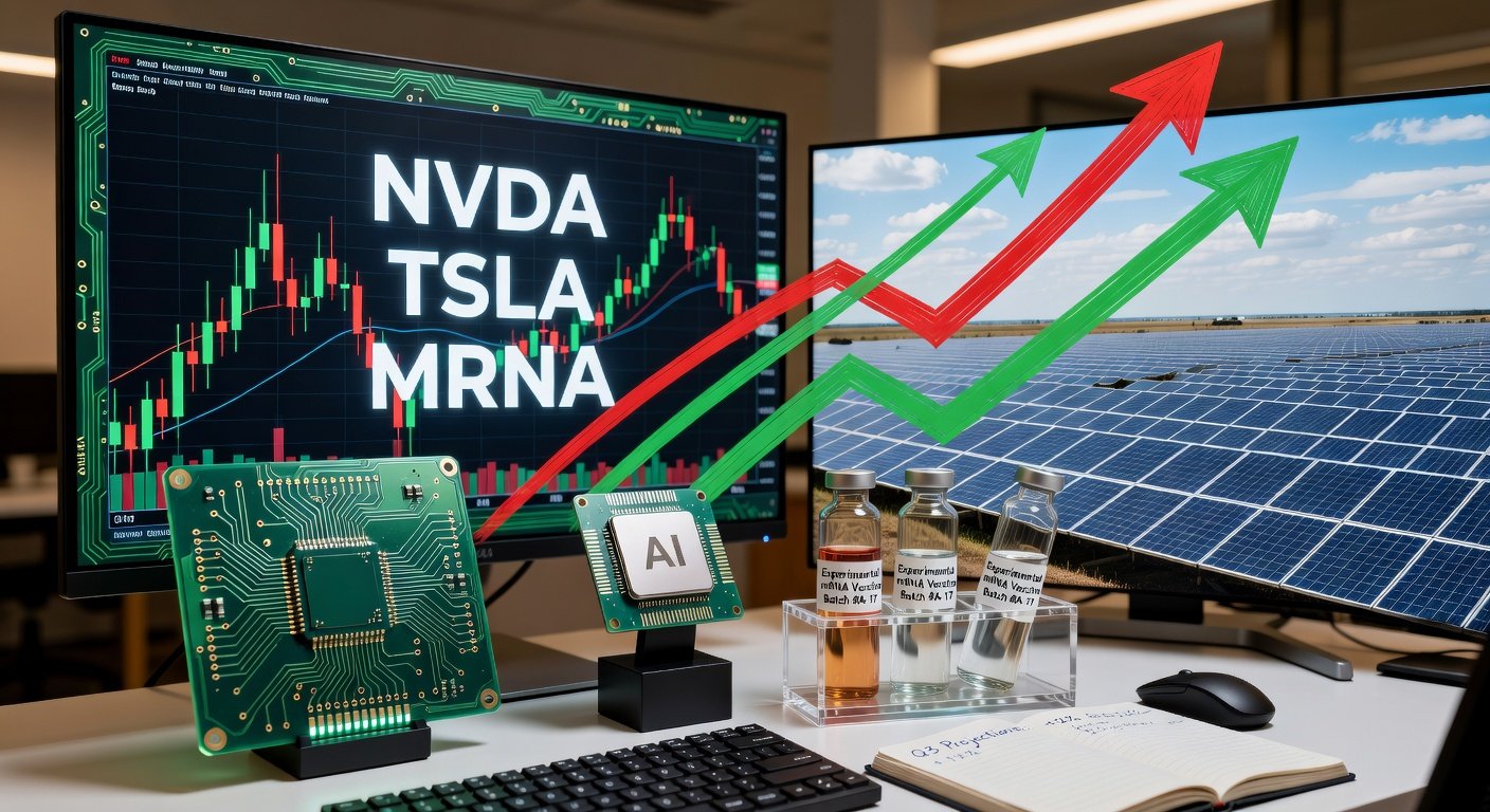 - 60/30/10 Split: 60% AI (NVDA, TSLA, PLTR, AVGO, AMD), 30% Biotech (MRNA, CRSP, VRTX), 10% Clean Energy (ENPH, FSLR) balances risk.