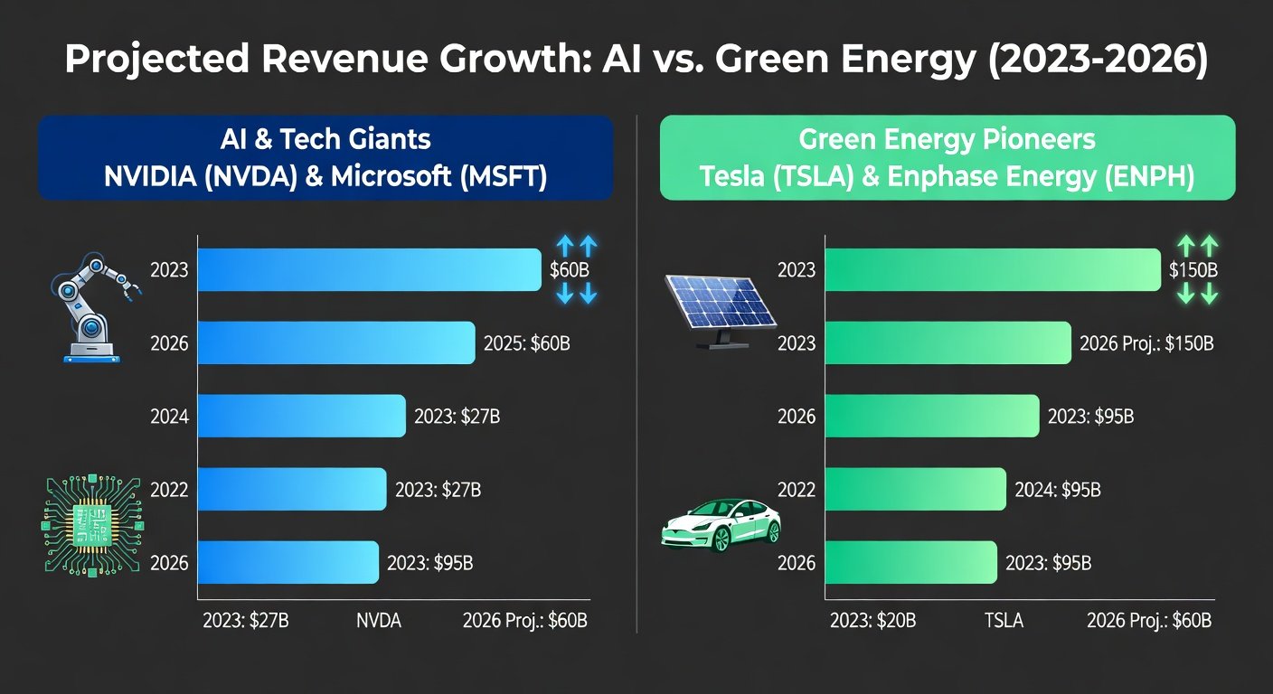 AI edges out in raw growth due to software margins (70%+), while green energy offers stability from long-term contracts. Both could see 2-3x returns from current levels by 2028, per consensus analyst targets on Nasdaq.